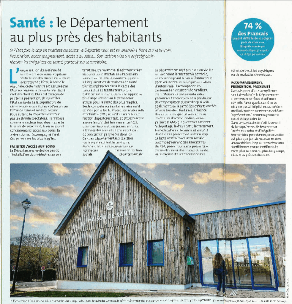 Nous vous invitons à lire l’article sur le sujet, qui souligne le travail réalisés en local, par les élus, et professionnels de santé pour faire du territoire, un lieu où il fait bon vivre.